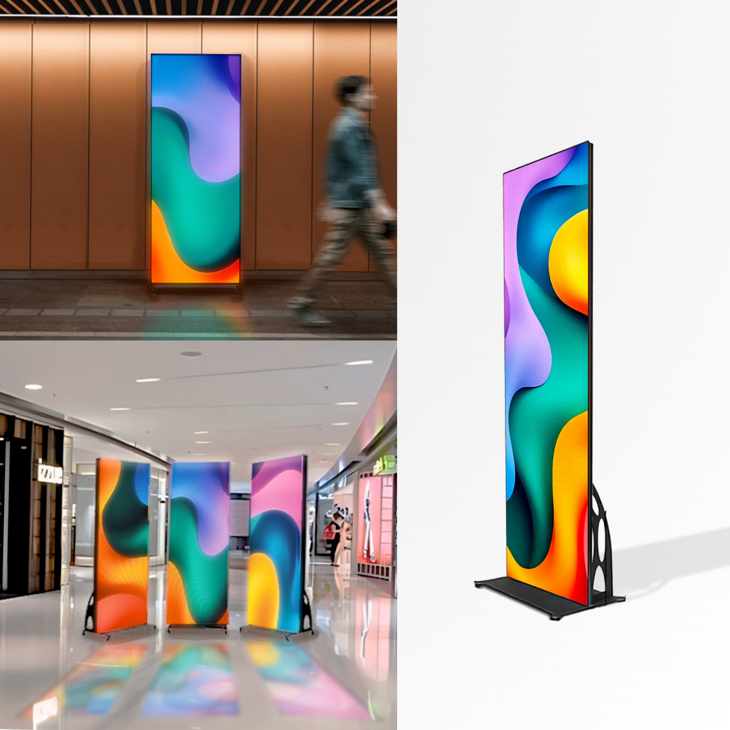 Upgrade your advertising with the Digital LED Poster Display, a super-thin, high-resolution digital signage solution designed for retail stores, airports, hotels, banks, hospitals, and public spaces. Whether mounted on the floor, wall, or ceiling, this lightweight LED screen ensures seamless, high-refresh-rate visuals with multiple control options for effortless content management.